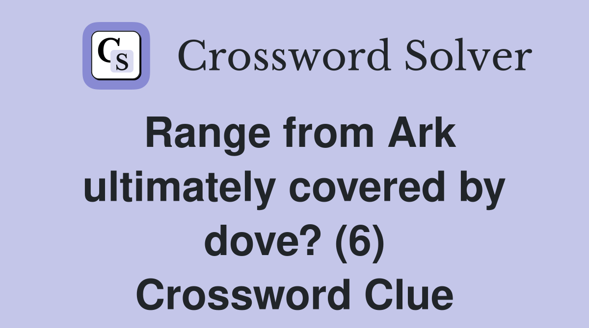 Range from Ark ultimately covered by dove? (6) Crossword Clue Answers