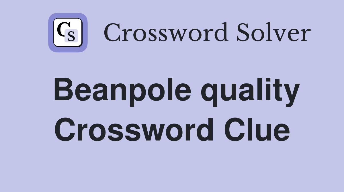 Beanpole quality Crossword Clue Answers Crossword Solver