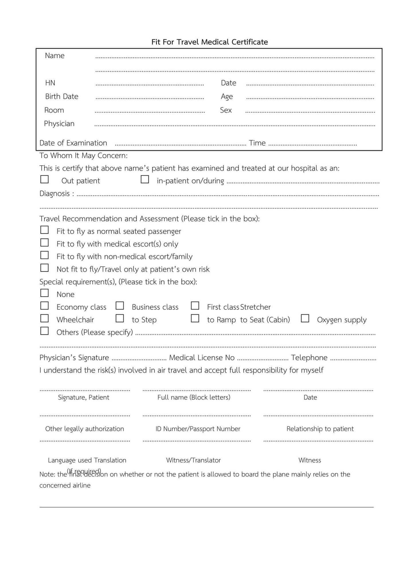 Fit To Fly Health Certificate For Travelers To Thailand THAIest For Fit