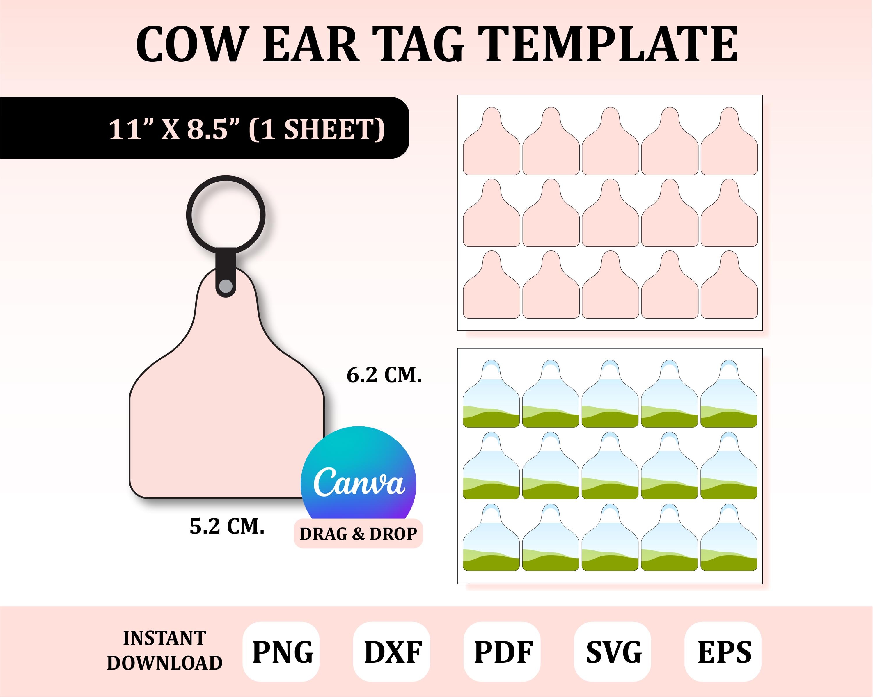 Cow Ear Tag Template Keychain Template Keychain Sublimation Cow Tag