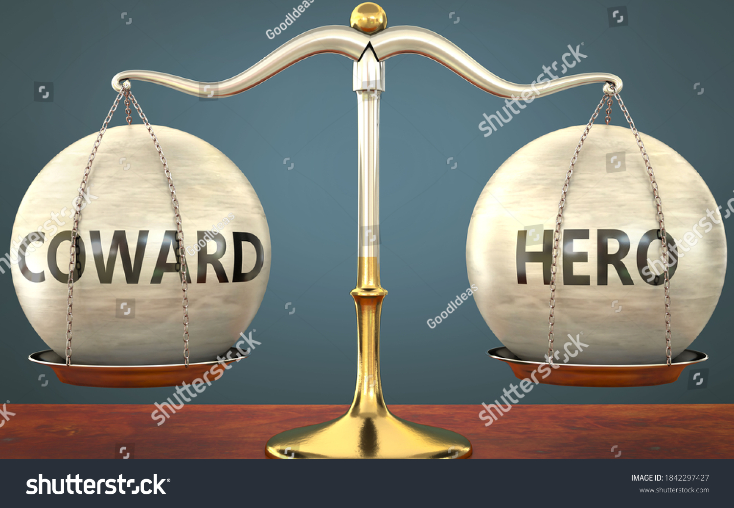 Coward And Hero As Different Choices In Life Pictured As Words Coward