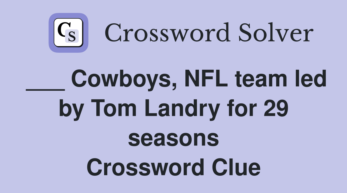 Cowboys NFL team led by Tom Landry for 29 seasons Crossword Clue