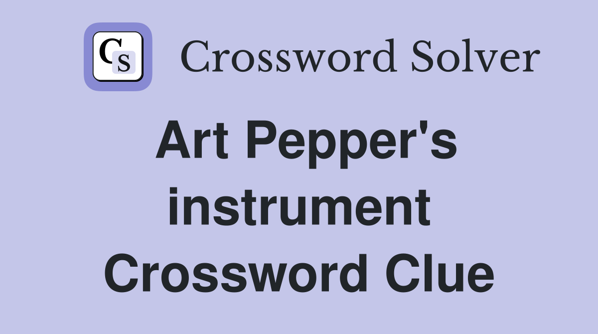 Art Pepper #39 s instrument Crossword Clue Answers Crossword Solver