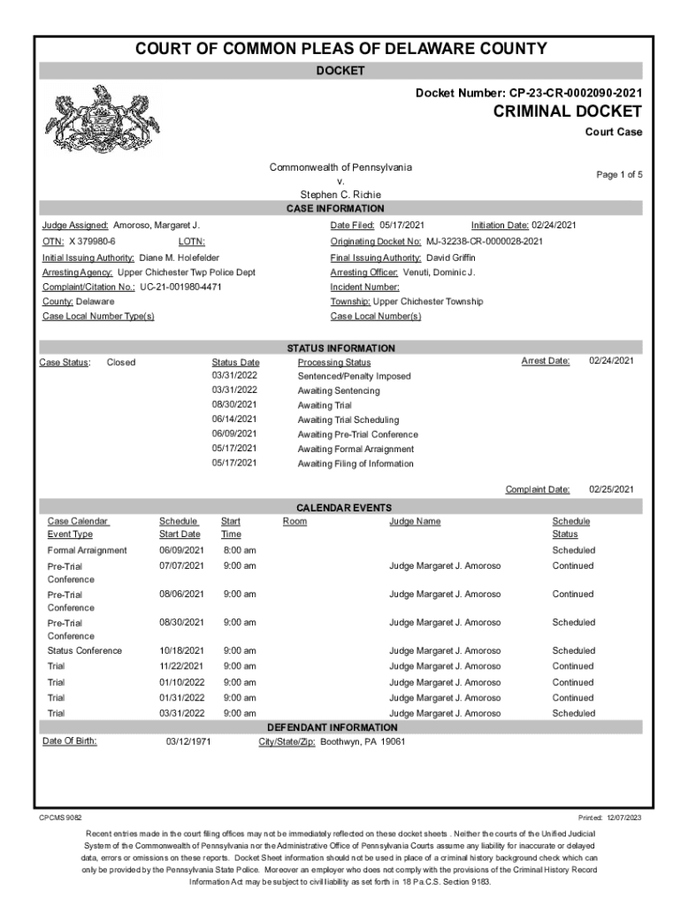 Criminal Plea Docket Starting Late 1/17/24 Court News