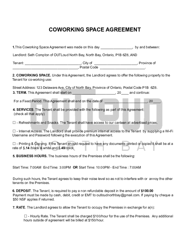 Fillable Online New Coworking Space Agreement 2022 Fax Email Print