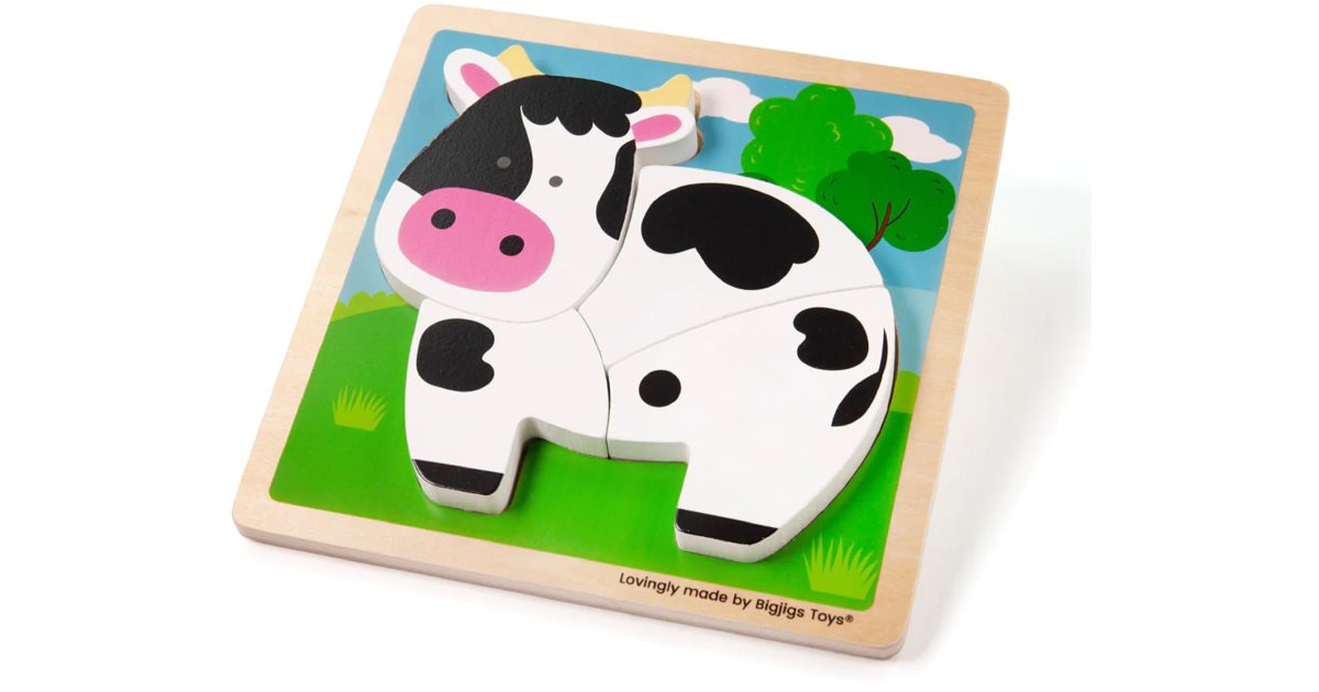 Bigjigs Toys Chunky Lift Out Puzzle Cow atividades para encaixar peças
