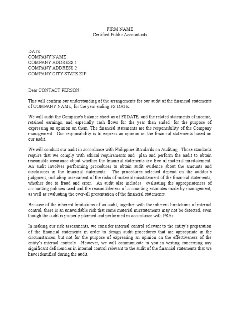 Audit Engagement Letter CPA PDF Financial Audit Audit