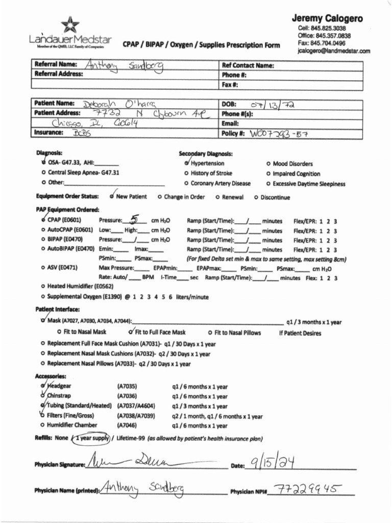 CPAP Prescription Letter of Medical Necessity Form Fill Online