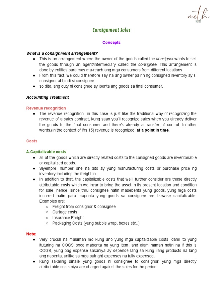 Consignment Accounting Notes and CPAR Quizzer PDF Debits And