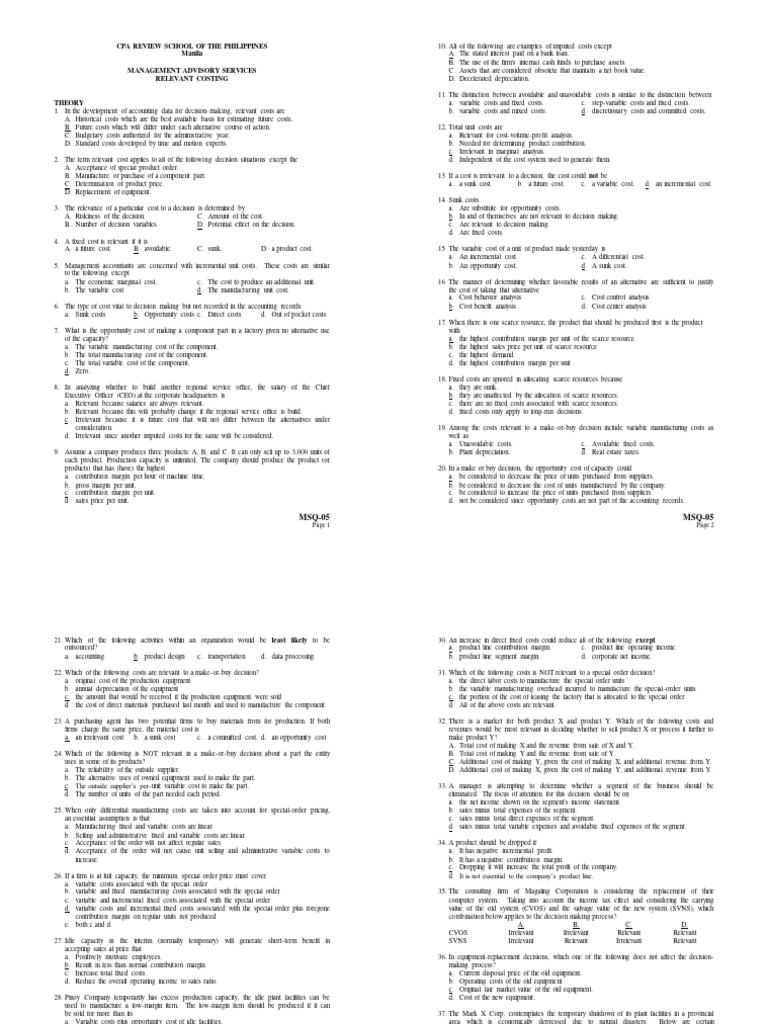 Relevant Costing Test Bank Cpar PDF Cost Opportunity Cost