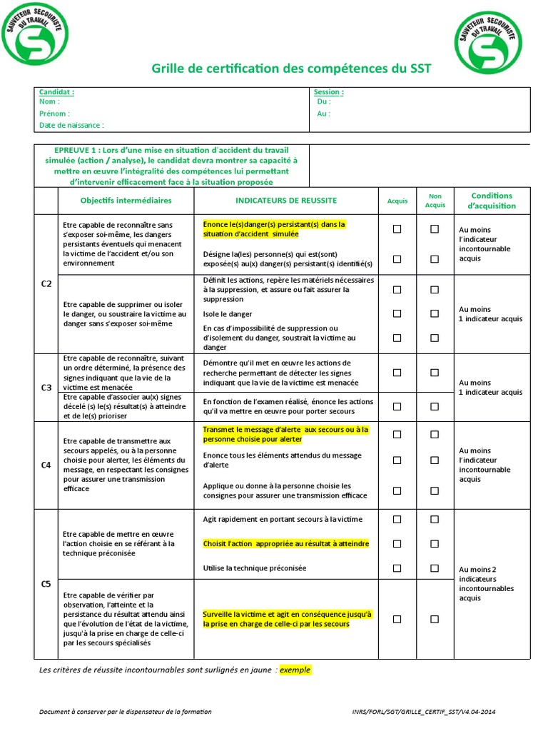 Grille Certification SST PDF