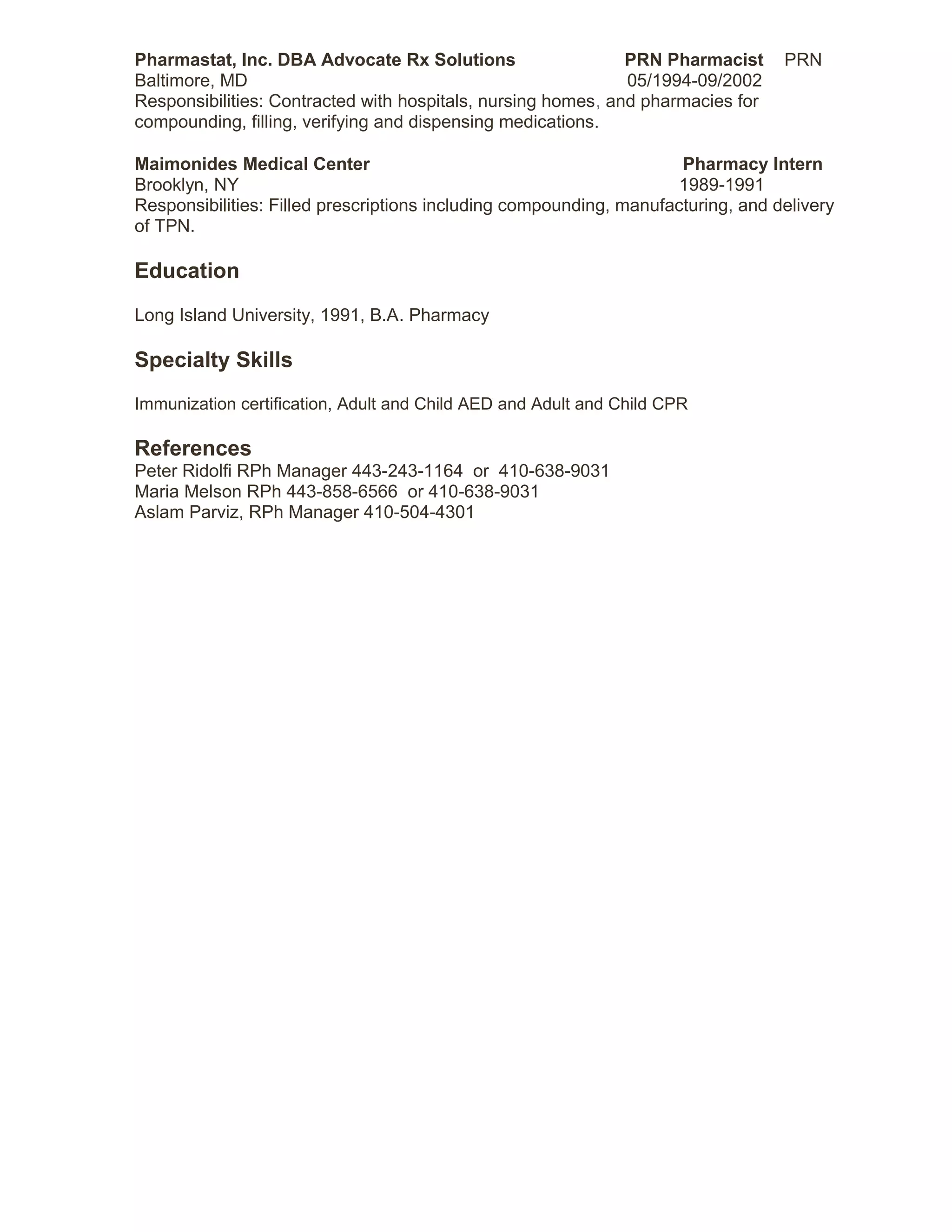 Resume DOC Pharmaceutical Industry Industries