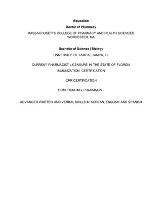 Reyna Chon Resume DOCX Pharmaceutical Industry Industries