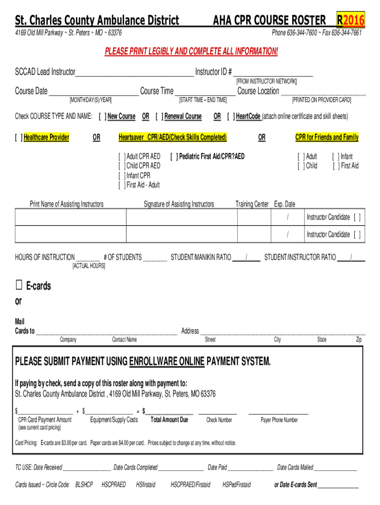 Fillable Online St Charles County Ambulance District CPR Classes in