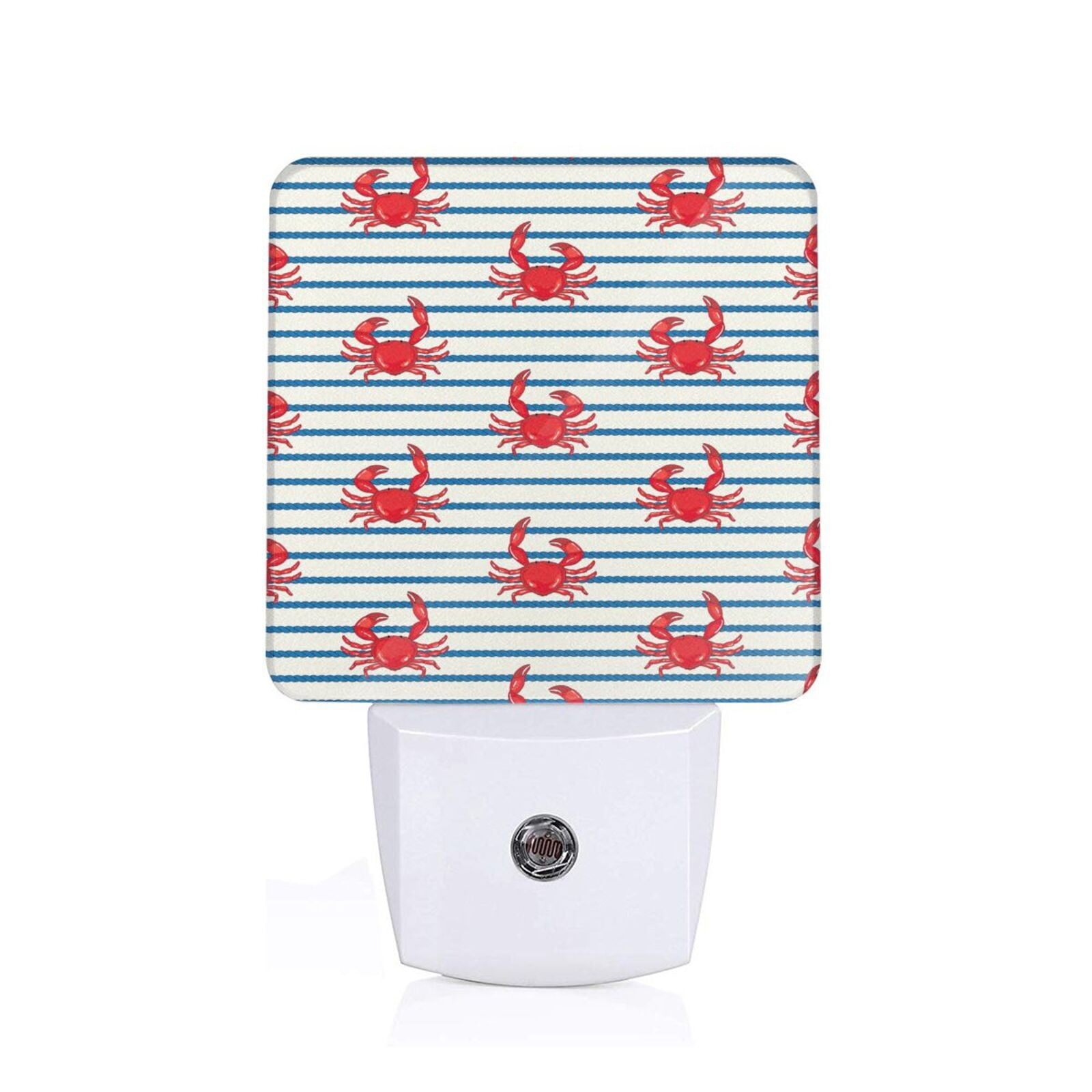 Fuzoiu Cute Red Crabs With Nautical Print Dusk to Dawn LED Night Light