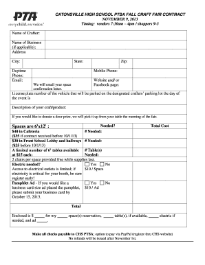 Fillable Online CATONSVILLE HIGH SCHOOL PTSA FALL CRAFT FAIR CONTRACT
