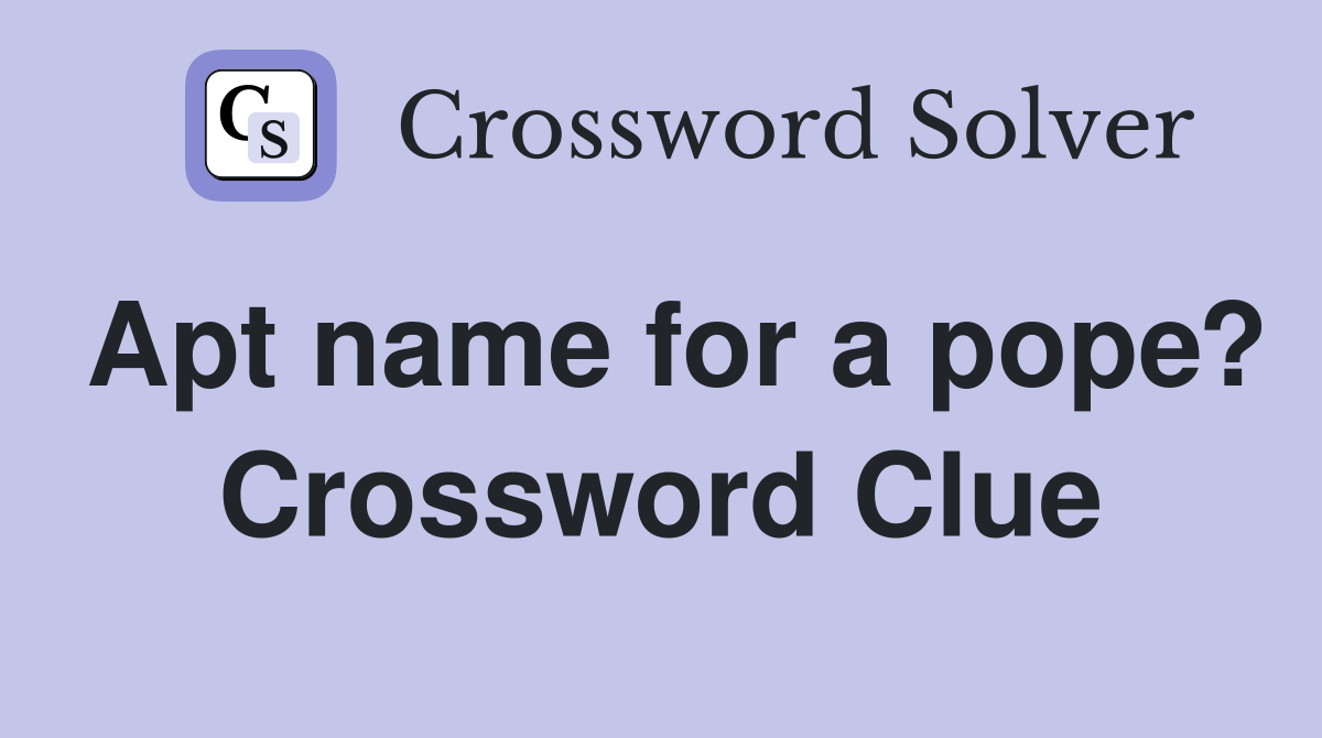 Apt name for a pope? Crossword Clue Answers Crossword Solver