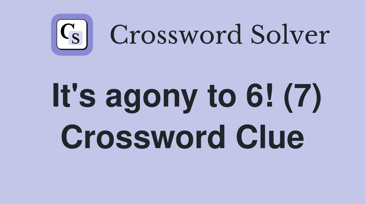 It s agony to 6 (7) Crossword Clue Answers Crossword Solver