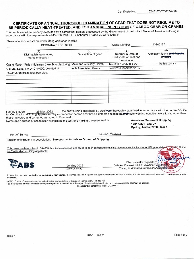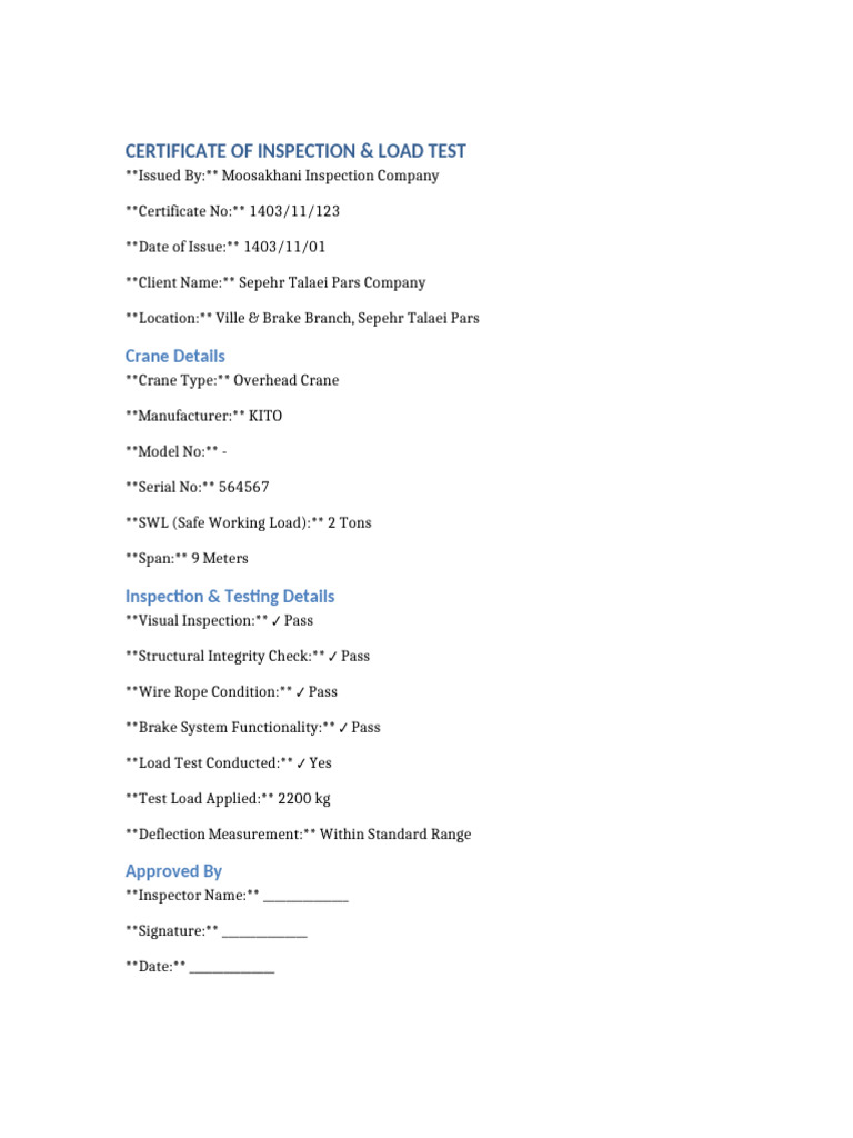 Here are some of the images for Crane Certificate Of Inspection that we found in our website database.