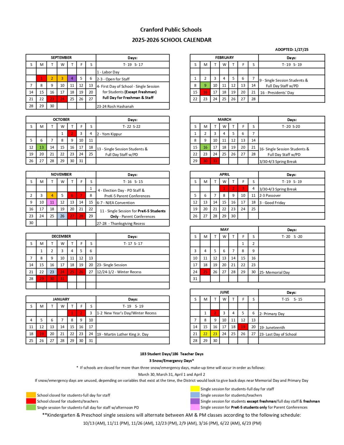 Cranford Public Schools Calendar 2025 Schoolcalendars net