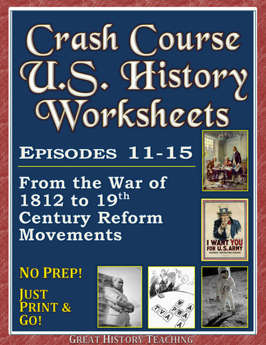 Crash Course US History Worksheets: Episodes 11 15 Teaching Resources