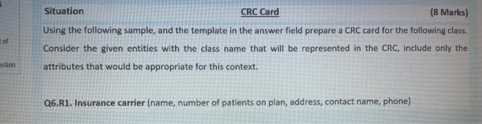 Solved tof estion Situation CRC Card (8 Marks) Using the Chegg com