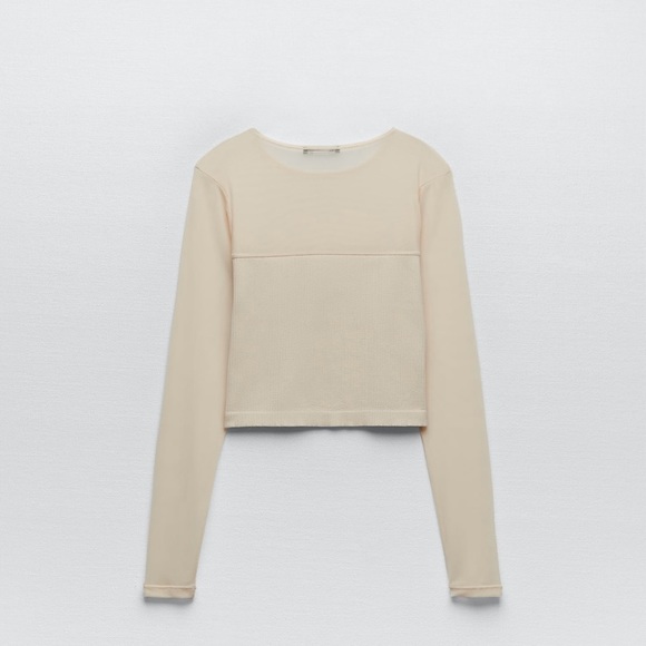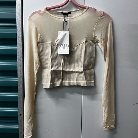 Zara Tops Zara Seamless Mesh Cream Crop Top Poshmark
