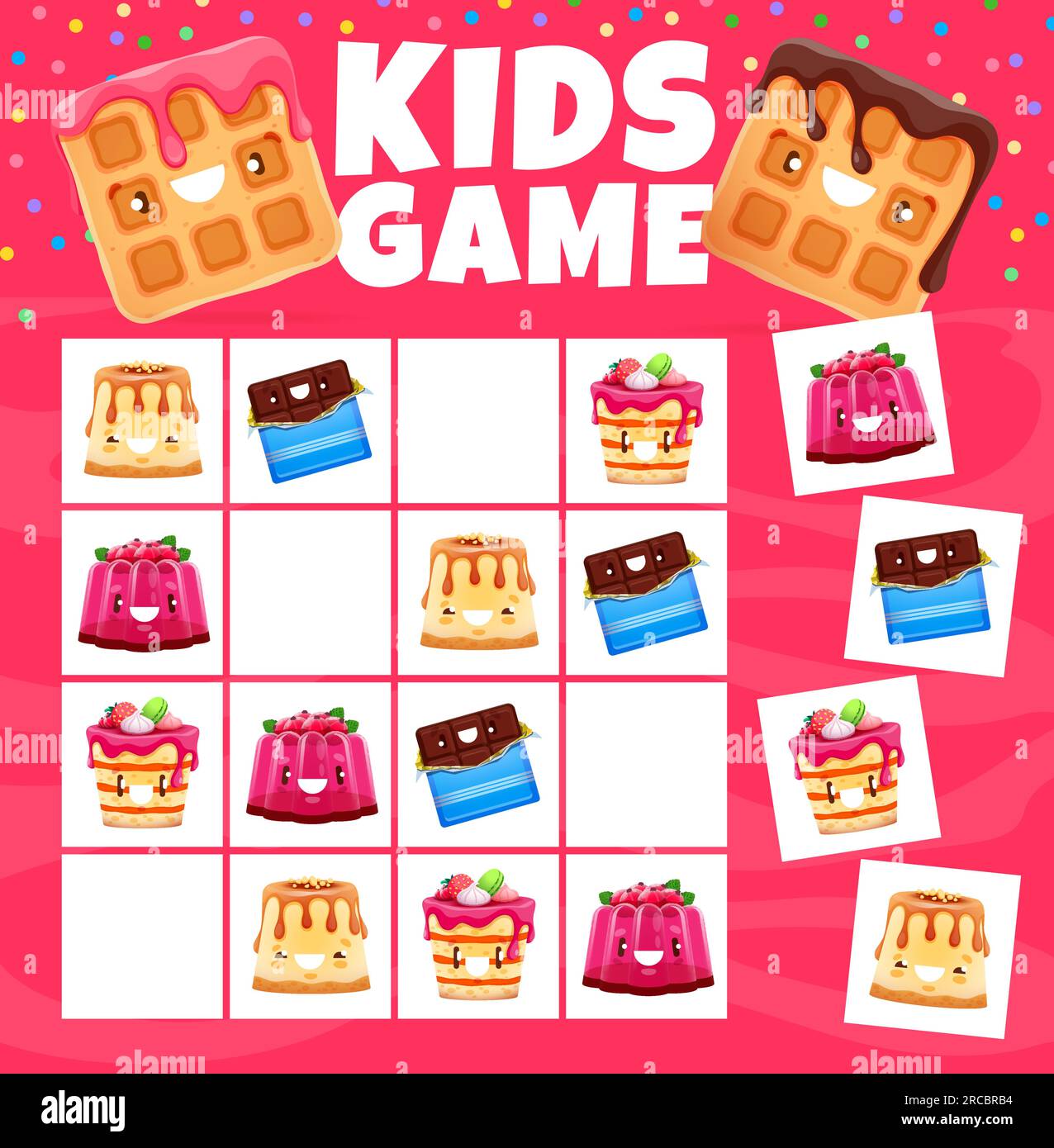 Sudoku kids game cartoon sweets dessert and cake characters Vector