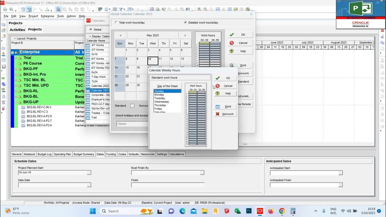 Create Project Calendar in Primavera P4 KH Version YouTube