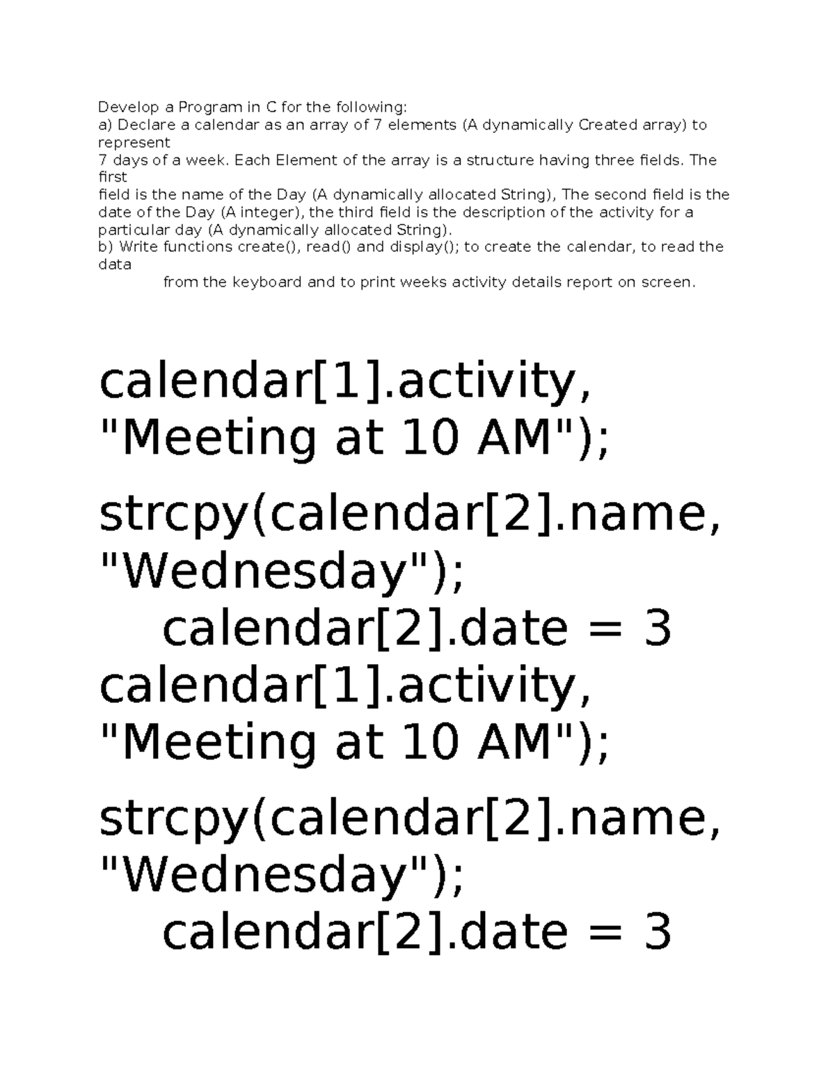 Ll DSA Lab Experiment: C Program for Weekly Calendar Structure Studocu