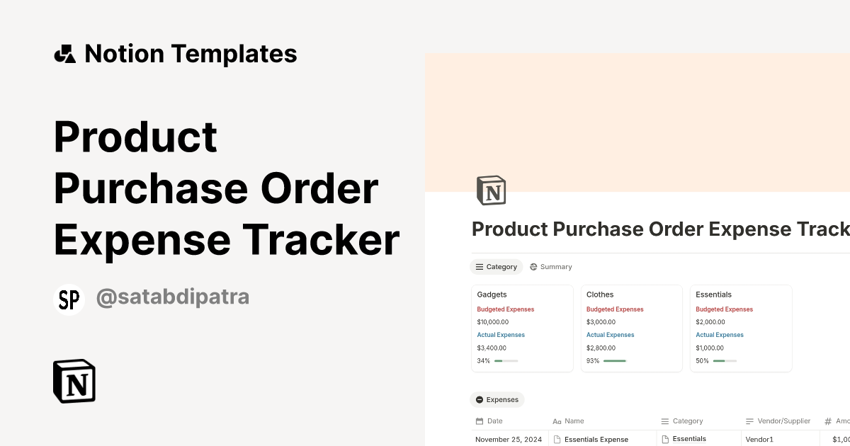 Product Purchase Order Expense Tracker Template by Satabdi Patra