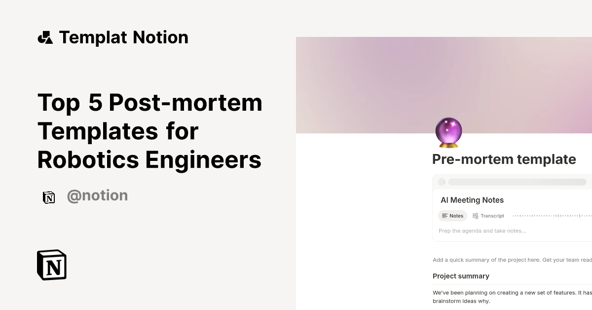 Top 5 Post mortem Templates for Robotics Engineers Notion Marketplace