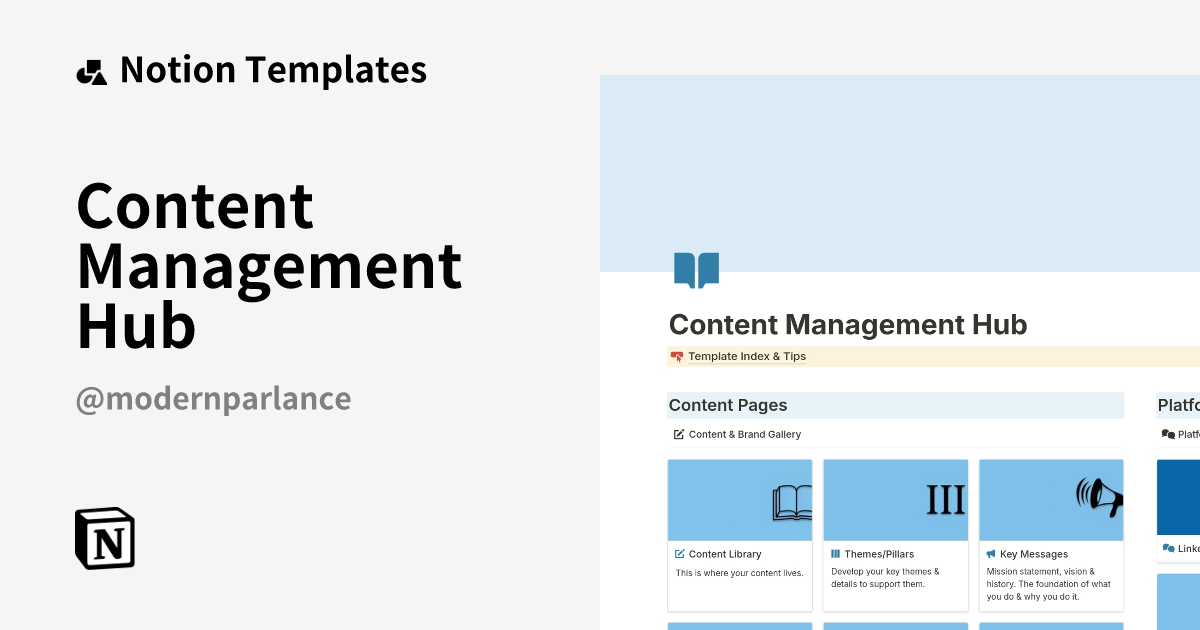Content Management Hub Template by Deborah Modern Parlance Notion