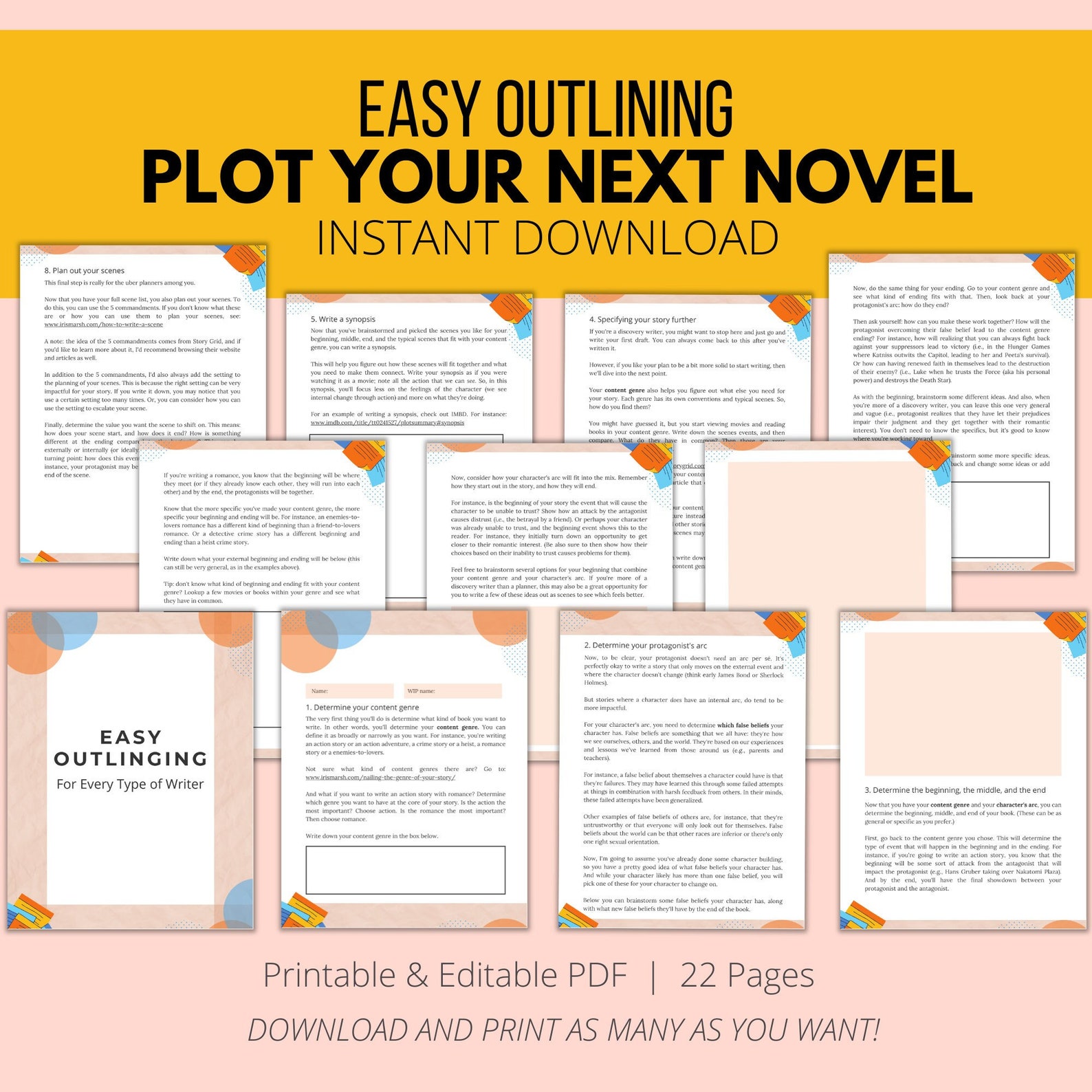 Book Outlining Workbook Printable Novel Plotting Guide for Writers