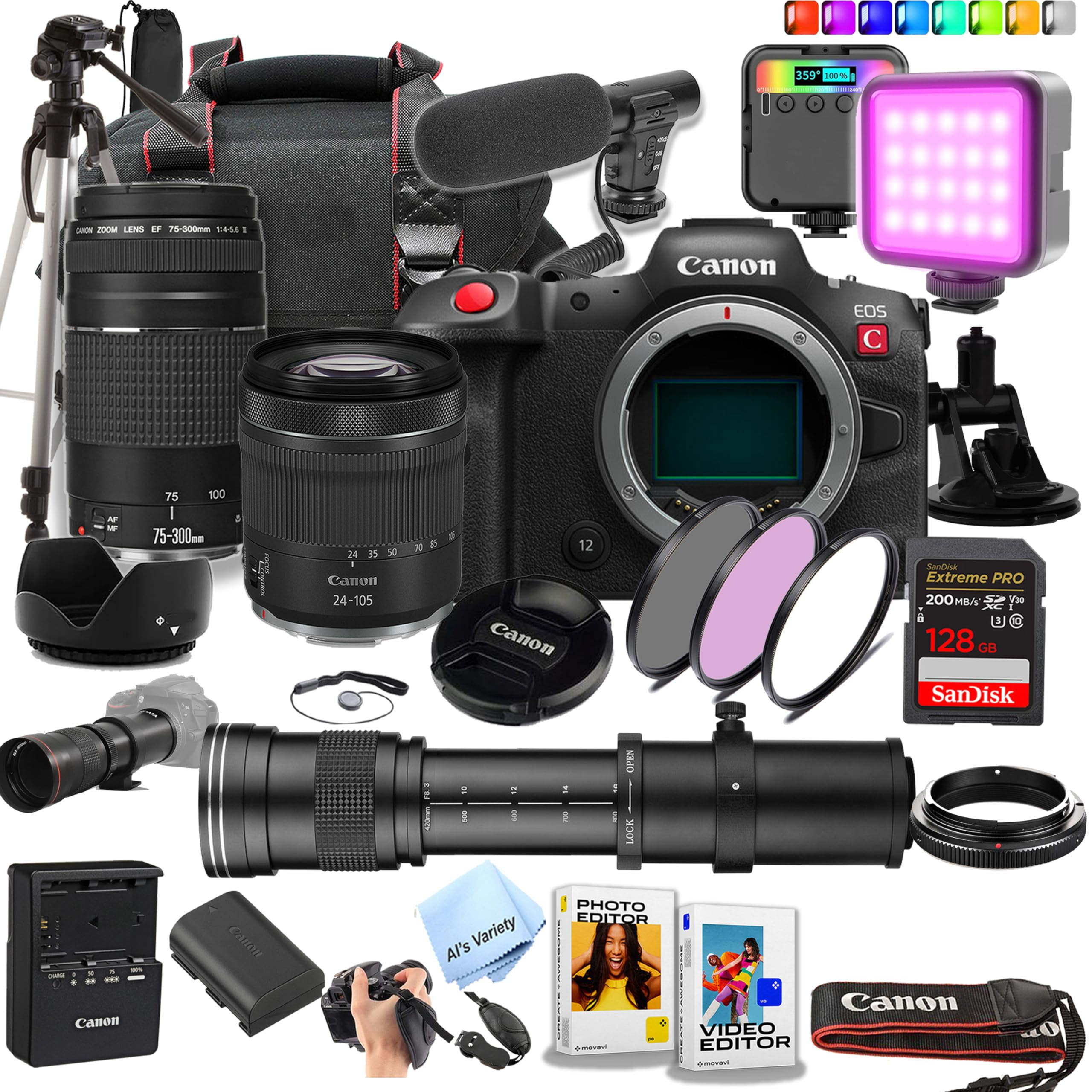 Canon EOS R5 C Full Frame Mirrorless Camera with 24 105mm 75 300mm