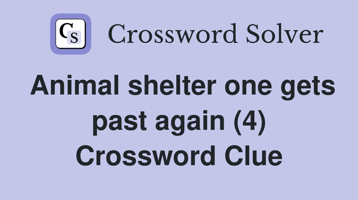 Animal shelter one gets past again (4) Crossword Clue Answers
