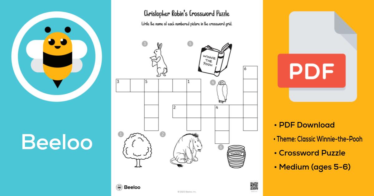 Advanced winnie the pooh themed crossword puzzle for kids ages 9 and up