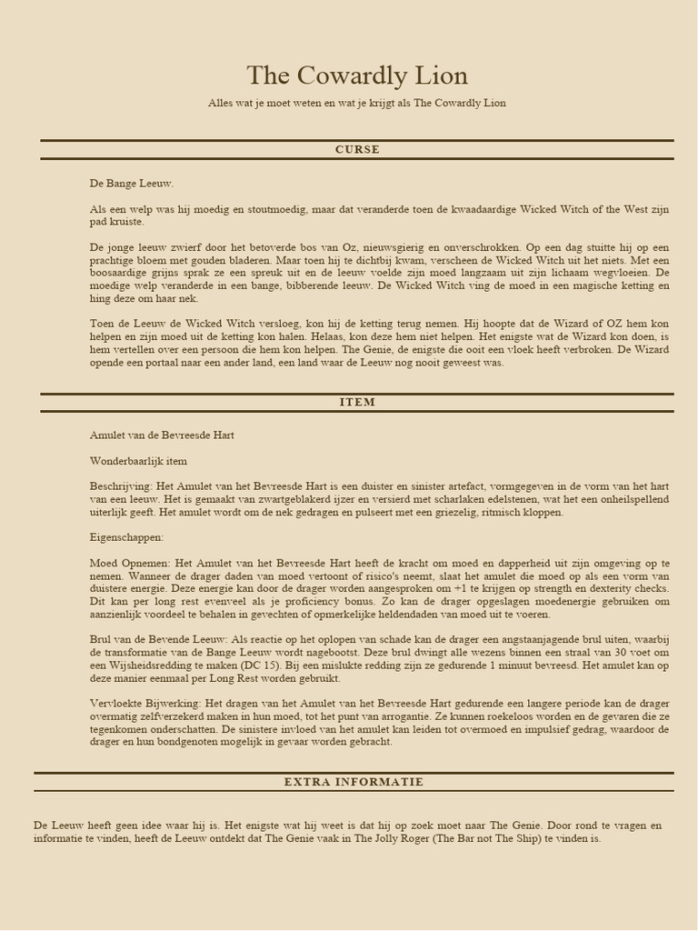 Cowardly Lion PDF