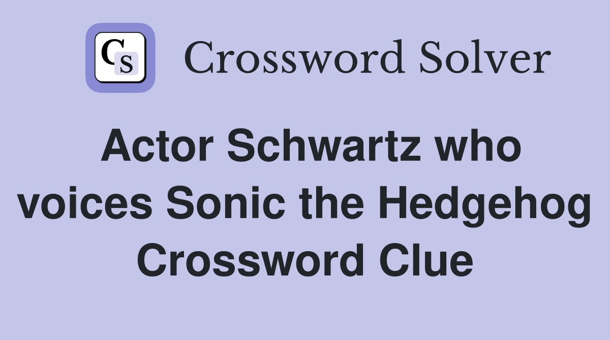 Actor Schwartz who voices Sonic the Hedgehog Crossword Clue Answers