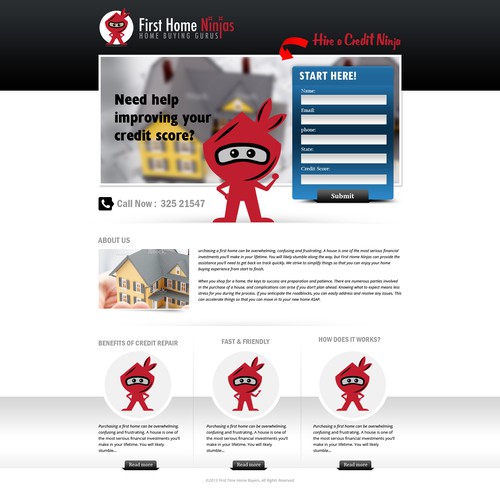Create a credit repair landing page for FirstHomeNinjas com Landing