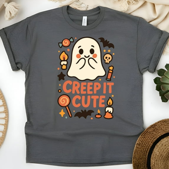 Creep It Cute Graphic Tee Funny Ghost Candy Cartoon Shirt Dark Heather