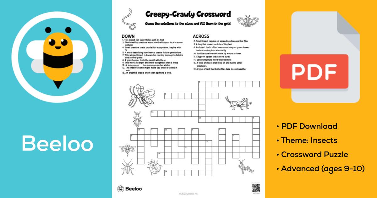 Creepy Crawly Crossword • Beeloo Printable Crafts and Activities for Kids