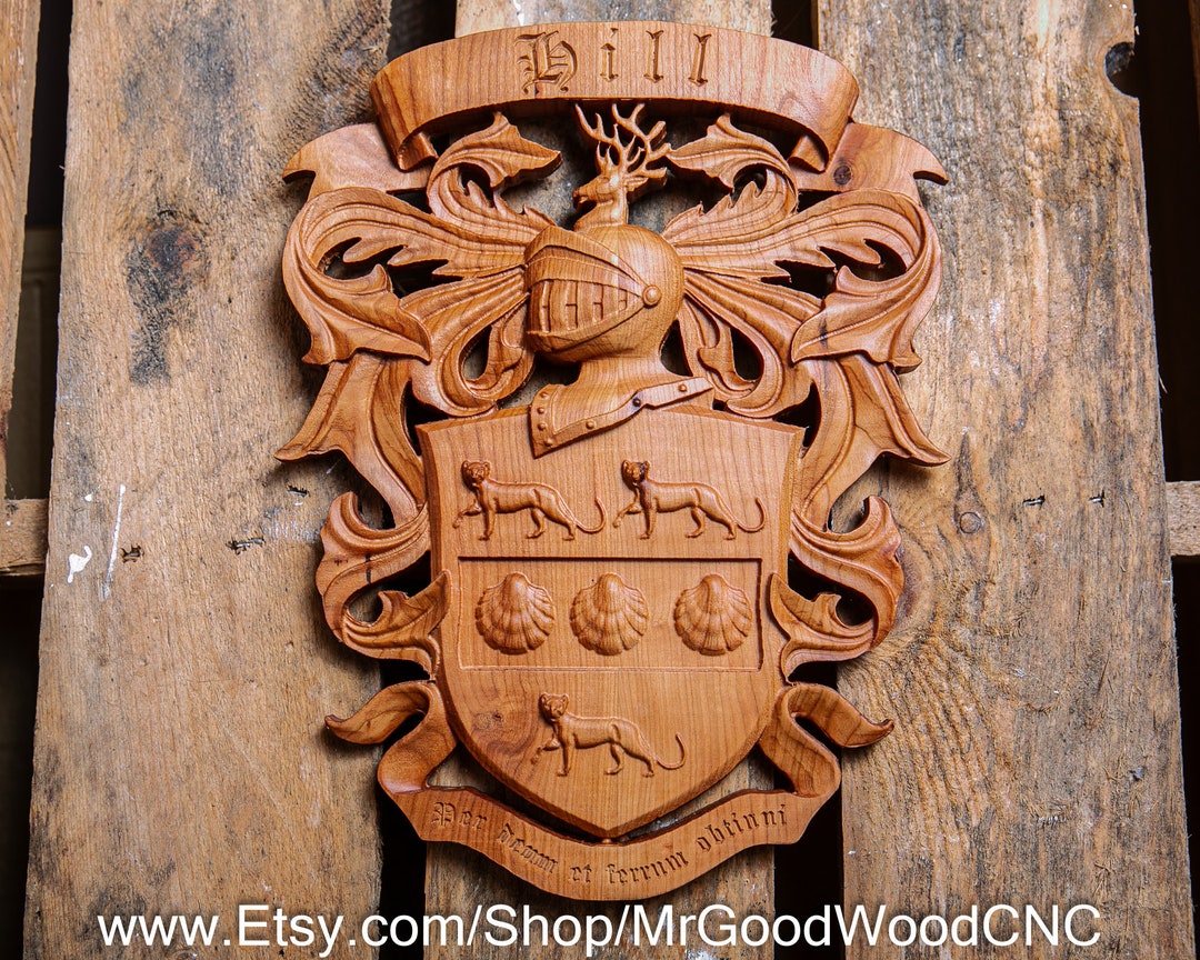 Personalized Family Arms Crest Hand Carved Coat of Arms Etsy