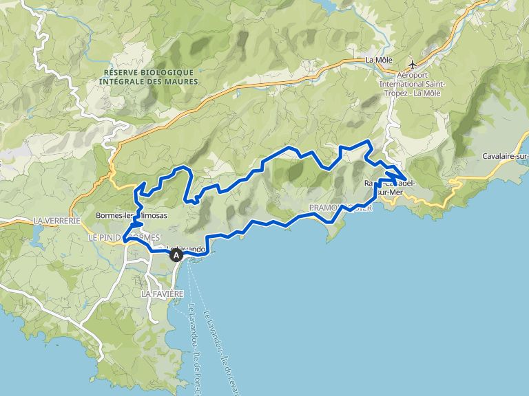 Boucle depuis Le Lavandou à la route des crêtes et au col de Canadel