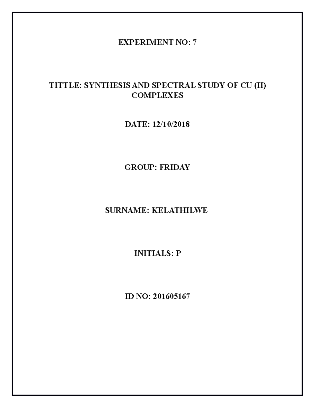 Experiment NO 7 TFNKGKFJH EXPERIMENT NO: 7 TITTLE: SYNTHESIS AND