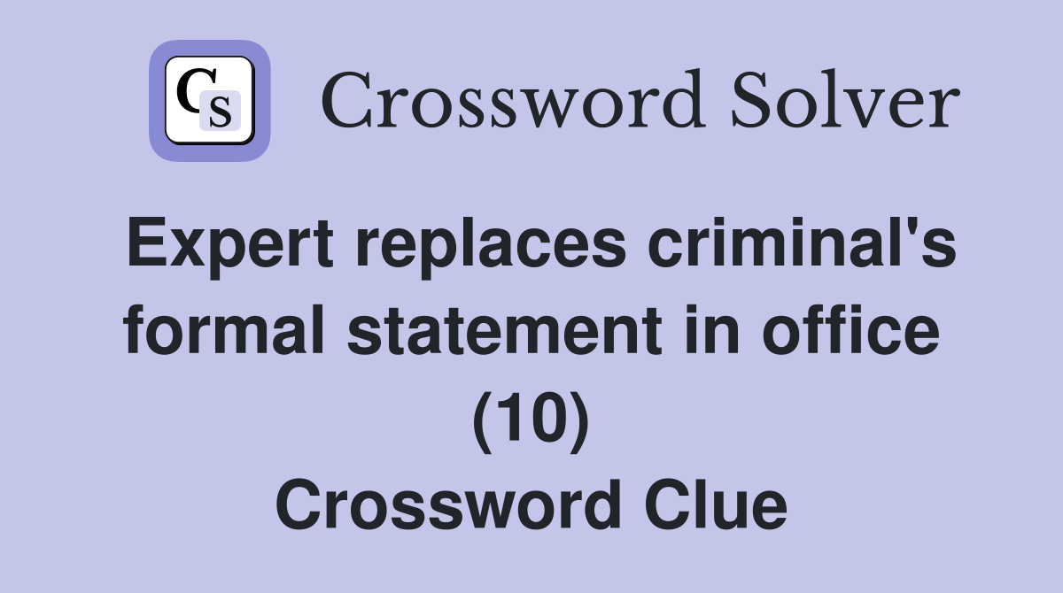 Expert replaces criminal #39 s formal statement in office (10) Crossword