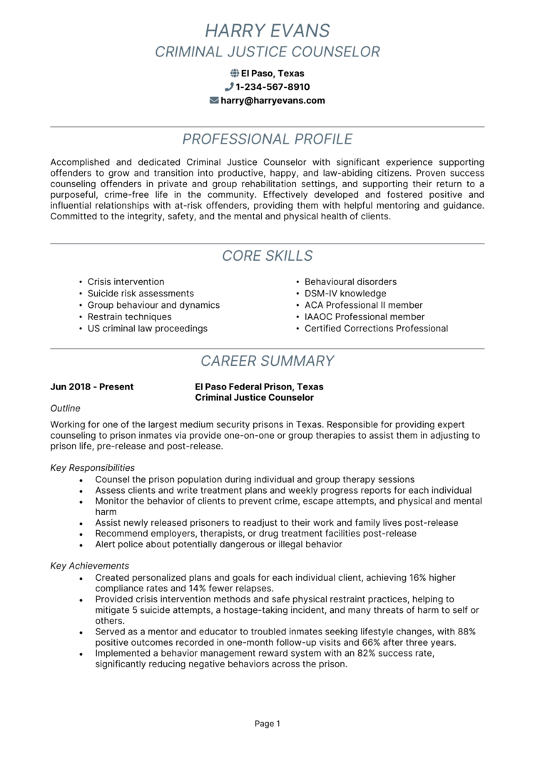 Criminal Justice Resume Example