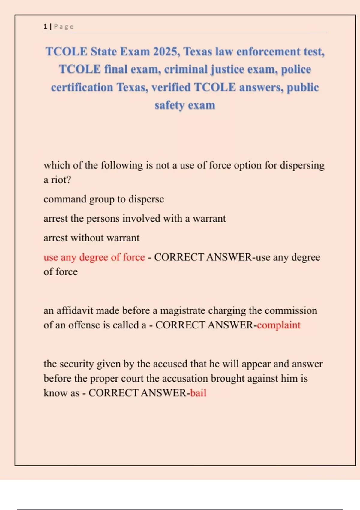 TCOLE State Exam 2025 Texas law enforcement test TCOLE final exam