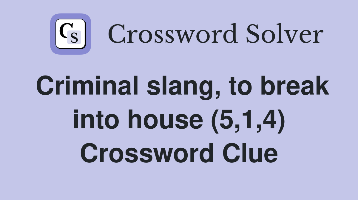 Criminal slang to break into house (5 1 4) Crossword Clue Answers