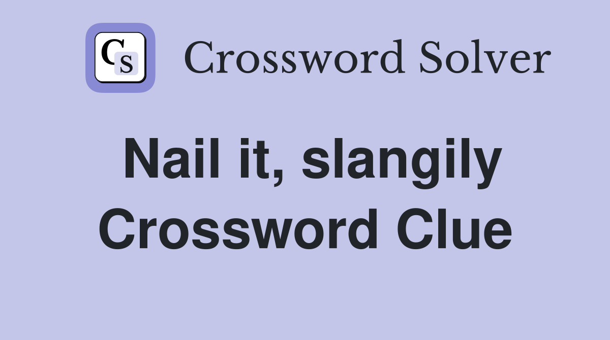Nail it slangily Crossword Clue Answers Crossword Solver